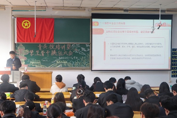 院长任雁宣读了新一任学生骨干聘任决定,与会嘉宾为受聘学生骨干颁发聘书,并为新团员佩戴团徽。院团委书记李晓彧就本学年青共校培训的整体安排作了详细说明。学生骨干代表赵宗驿发言,表达了对组织培养的感谢以及未来履职尽责的决心;学员代表胡依带领全体学员庄严宣誓,承诺将以饱满的热情投入学习和工作中,不负时代使命。