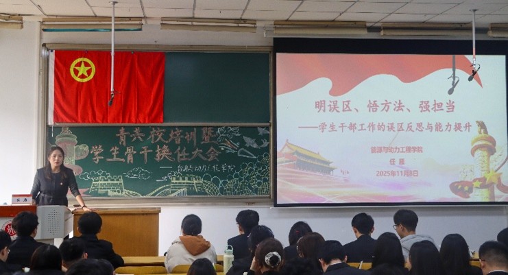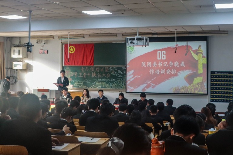 在08201H教室隆重举行2025-2026学年青共校培训开班典礼暨学生骨干换任大会。院党委书记胡向明、院党委副书记兼副院长任雁、院团委书记李晓彧、辅导员祁亚萍出席活动,巨乳做爱各学生组织学生骨干、新入团团员及2024、2025级班团委员参加培训。