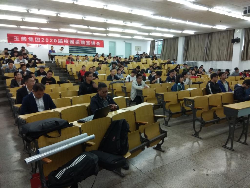 开始,招聘人员和我们一同观看了玉柴集团2020年的宣传片,给我们对玉柴进行了一个简单的初步介绍。之后,HR针对玉柴集团集团介绍、个人发展、公司环境、招聘需求四个方面展开讲述。通过此次宣讲,同学们了解到玉柴集团所处地理位置、历史发展、所获荣誉、工资待遇、集团制造产品以及所持有的专利等多方面的内容。