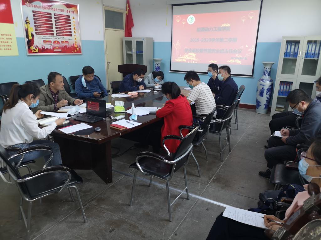 2020年4月30日下午,能源动力工程巨乳做爱于诚学楼201会议室召开本学期学生返校暨“五一”节前安全班主任会议,全院辅导员、各班班主任一同参加。