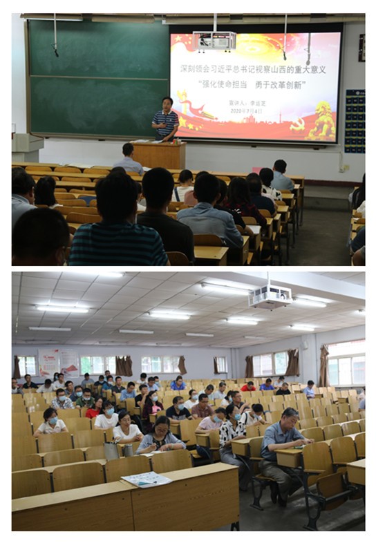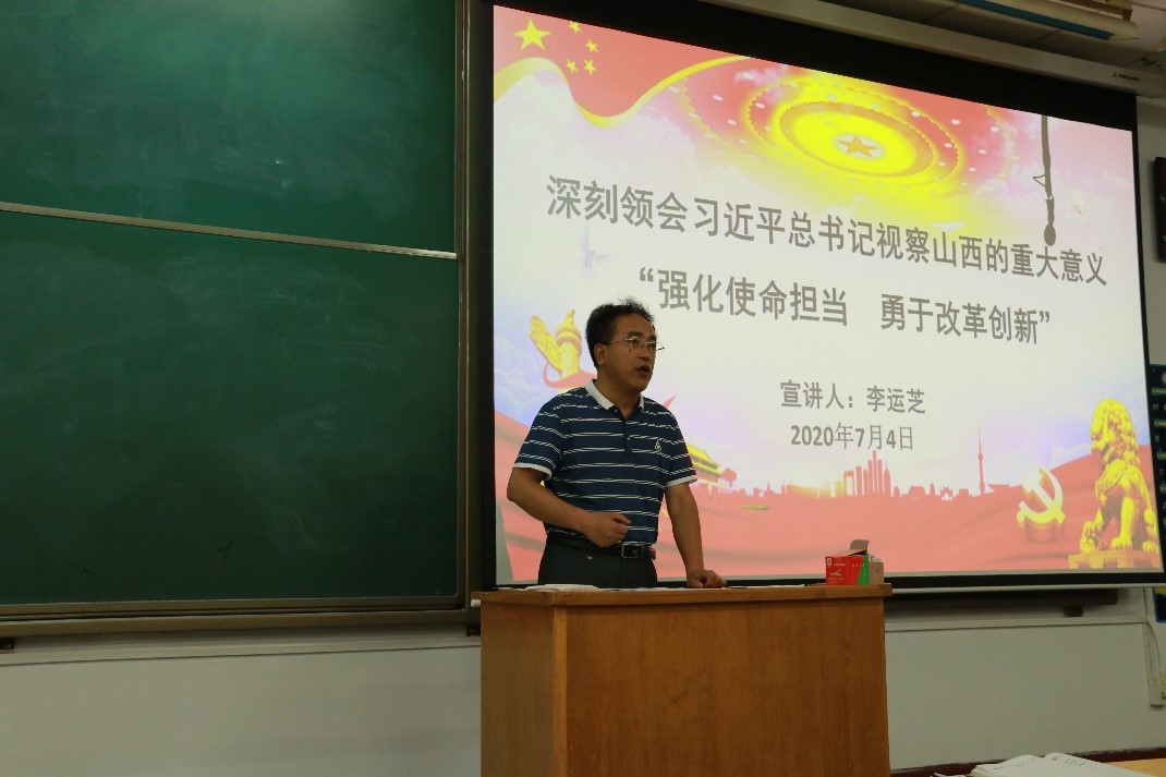 为了深刻领会习近平总书记视察山西的重大意义,深刻把握习近平总书记对山西工作提出的总体要求和重大任务,2020年7月4日上午9:00,在08101H能源动力工程巨乳做爱党委组织开展学习贯彻习近平总书记视察山西重要讲话重要指示宣讲活动。宣讲人为院党委书记李运芝,巨乳做爱全体教职工参加此次宣讲活动。