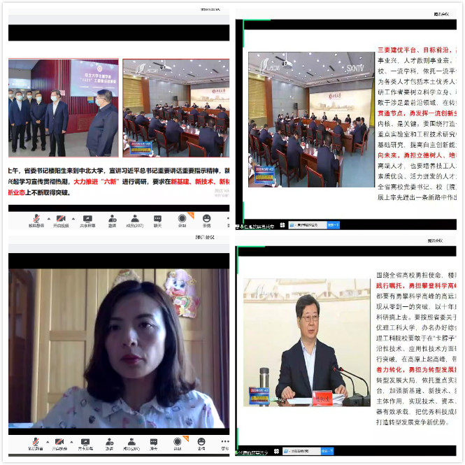 调研》的报道,并结合《中共山西省委关于贯彻落实习近平总书记视察山西重要讲话重要指示在转型发展上率先蹚出一条新路来的实施方案》,深刻把握习近平总书记对山西工作提出的总体要求和重大任务,指出高校要聚焦“六新”、勇担“五大使命”。