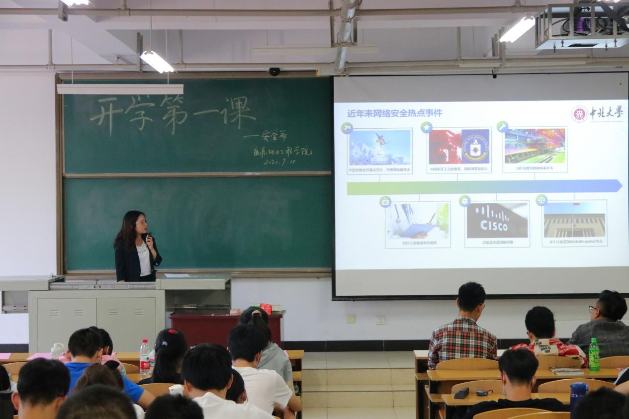 9月14日至9月20日是2020年国家网络安全宣传周,为进一步增强同学们的网络安全意识,提升网络安全问题甄别能力,提高网络安全防护技能,本次开学第一课特意邀请信息化建设与管理处胡静娴老师为同学们进行讲座。胡老师以《注重网络安全,提高防范意识》为题,结合校园内发生的真实案例,阐明网络安全的重要性,提醒同学们时刻树立保护个人隐私、防范网络风险的安全意识,合理设置个人门户密码,警惕可疑邮件,防患于未然。最后胡老师还叮嘱大家:网络不是法外之地,作为在校大学生要时刻提醒自己合理正常使用网络资源,营造网络清朗空间。