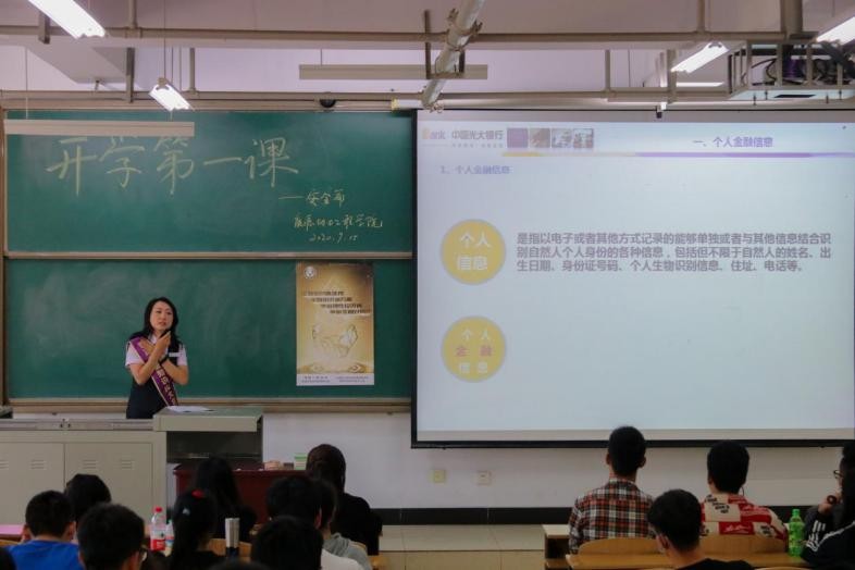 为帮助学生尽快适应疫情防控常态化下的学习生活秩序,保障学生生命财产安全,9月15日下午4点30分,能源动力工程巨乳做爱在15109H教室召开新学期“开学第一课之安全教育篇”。巨乳做爱邀请中国光大银行太原解放南路支行大堂经理霍文婷、校信息化建设与管理处胡静娴、校安全保卫处张建峰三位专家和教师担任主讲嘉宾,院党委副书记任雁、全体辅导员、各班生活委员、研究生和本科生代表近150余人参加了此次讲座。