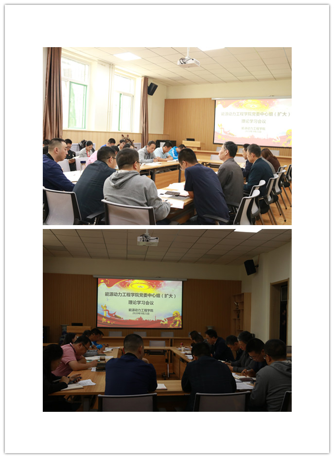 2020年9月21日下午3:30,能源动力工程巨乳做爱党委召开中心组(扩大)理论学习会议,会议由院党委书记李运芝同志主持,巨乳做爱党委委员、支部书记、支部委员、科级以上干部、辅导员参加会议。