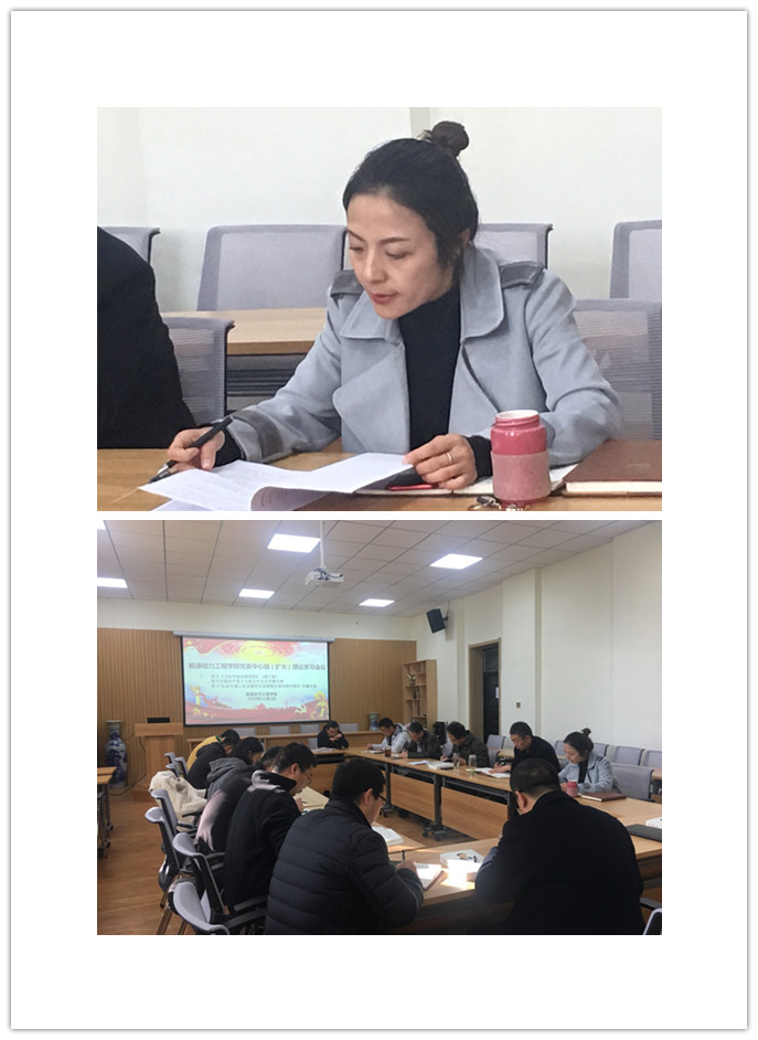 2020年11月2日下午3:30,能源动力工程巨乳做爱党委召开中心组(扩大)理论学习会议,学习《习近平谈治国理政》(第3卷)第十一专题“用习近平新时代中国特色社会主义思想铸魂育人” 和习近平出席纪念中国人民志愿军抗美援朝出国作战70周年大会并发表重要讲话内容。会议由党委书记李运芝同志主持,巨乳做爱党委委员、领导班子全体成员、各支部书记以及各科室负责人参加此次会议。