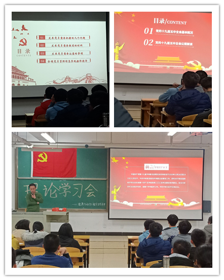 随后,叶老师对十九届五中全会公报进行了解读。十九届五中全会充分肯定了党的十九届四中全会以来中央政治局的工作,高度评价决胜全面建成小康社会取得的决定性成就,深入分析了我国发展环境面临的深刻复杂变化,阐述到2035年基本实现社会主义现代化远景目标。最后党支部组织委员景琰婷同志布置了本学期记录簿的书写内容。