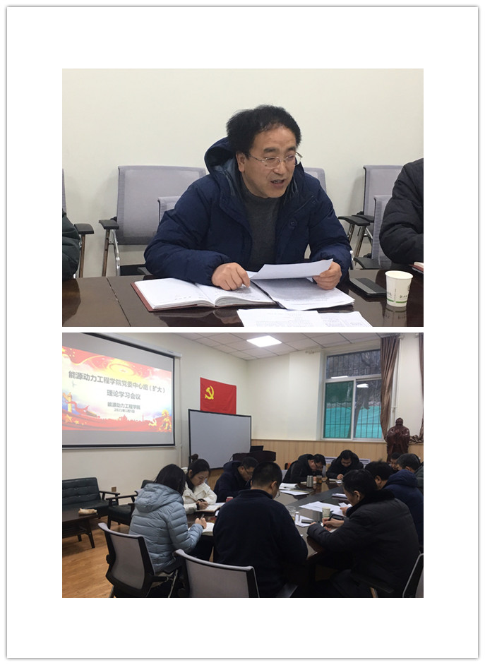 为深入学习习近平新时代中国特色社会主义思想,贯彻落实党的十九大和十九届二中、三中、四中、五中全会精神,全面贯彻落实新时代党的建设总要求和党的教育方针, 1月5日下午16:30,能源动力工程巨乳做爱在诚学楼118会议室召开党委中心组(扩大)理论学习会议。会议由巨乳做爱党委书记李运芝主持,院领导班子成员、党委委员、各支部书记和委员参加了此次会议。