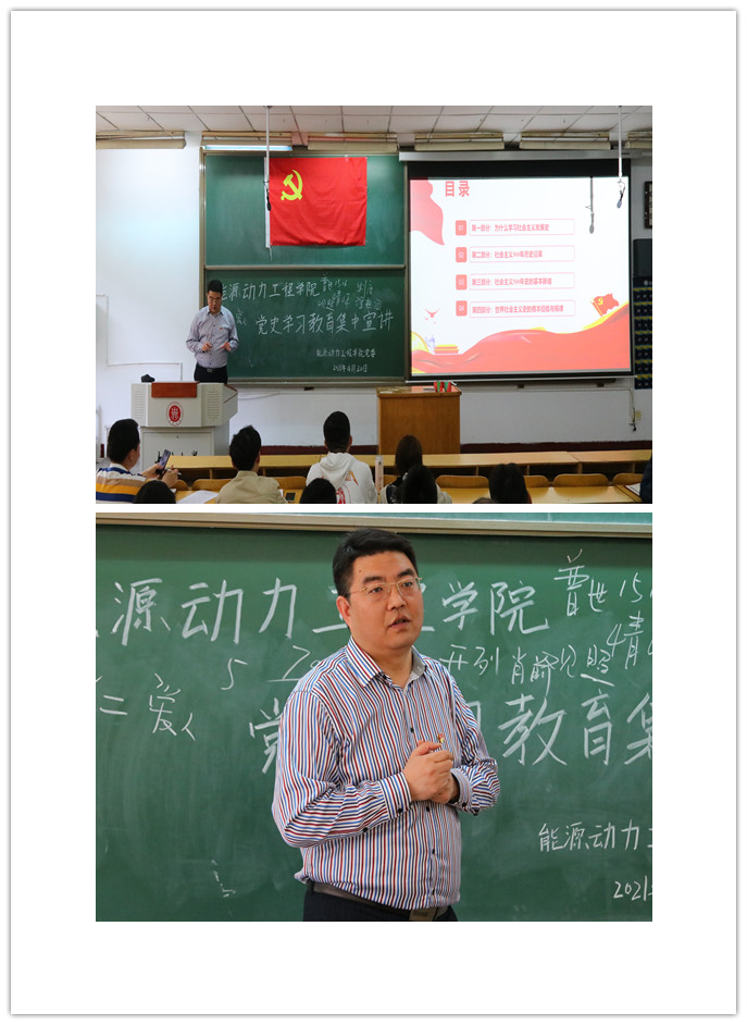 为持续推动党史学习教育效果,2021年4月20日下午能源动力工程巨乳做爱在08101H举行党史学习教育第二次集中宣讲活动,本次宣讲邀请到校宣讲团成员马克思主义巨乳做爱副院长杜刚担任主讲嘉宾,院党委副书记任雁主持,巨乳做爱全体师生党员参加了学习。