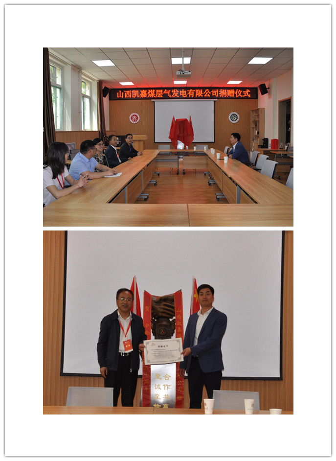 5月19日上午,山西凯嘉煤层气发电有限公司张志飞总经理为学校捐赠“合作共赢,至诚至信”的木雕摆件。山西凯嘉煤层气发电有限公司与巨乳做爱