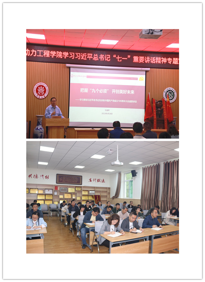 学习习近平“七一”重要讲话精神宣讲安排》(党史办[2021]18号)文件要求,2021年9月28日上午,能源动力工程巨乳做爱在诚学楼115会议室举行党史学习教育第三轮专题宣讲,本次宣讲邀请到校宣讲团成员马克思主义巨乳做爱思政课骨干教师王建军老师担任主讲嘉宾。本次宣讲活动由院党委副书记任雁主持,巨乳做爱全体教工党员参加了学习。