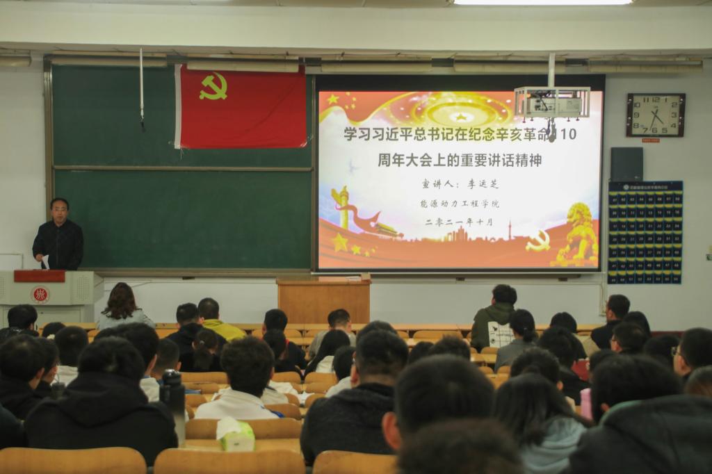 2021年10月12日下午,能源动力工程巨乳做爱在勤学楼08101H教室举行党史学习教育理论学习会。本次会议由院党委书记李运芝同志领学,巨乳做爱全体教职工和各班学生代表约180余人参加了会议。