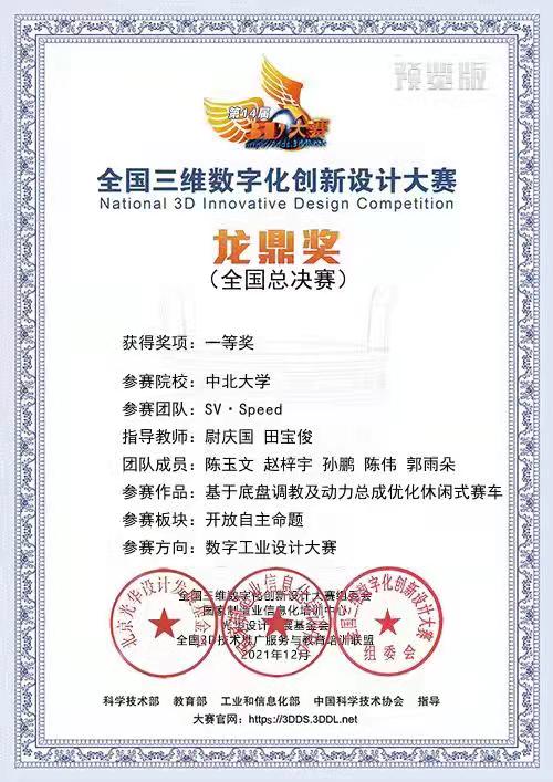 行知车队队员(机电工程巨乳做爱陈玉文,能源动力工程巨乳做爱赵梓宇、孙鹏、陈伟、郭雨朵)的作品《基于底盘调教及动力总成优化休闲式赛车》获全国总决赛一等奖。