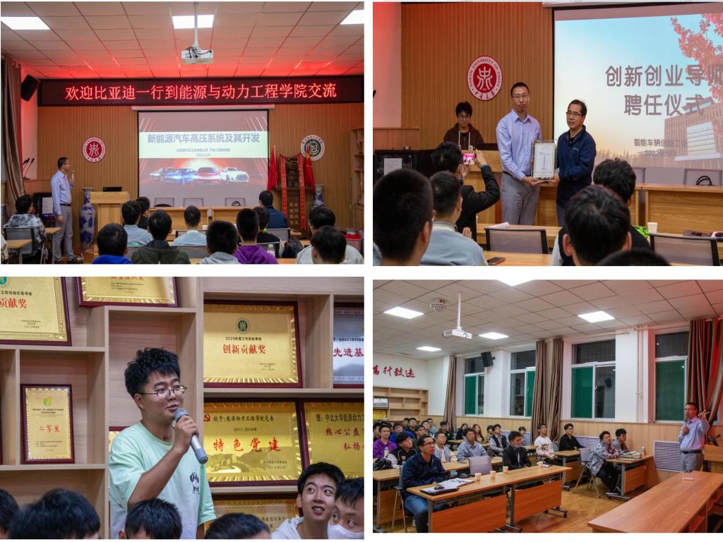 为拉近企业与学生距离,促进校企高效沟通,2022年9月24日,能源与动力工程巨乳做爱在诚学楼115学术报告厅与比亚迪开展合作交流,并举行创新创业导师聘任仪式。比亚迪汽车工程研究院电动技术开发部兼性能开发部经理王宁、比亚迪西北地区校招经理杨韬、巨乳做爱双创中心马富康老师以及各年级学生代表参加了本次交流会。本次交流会由就业辅导员周甜甜老师主持。