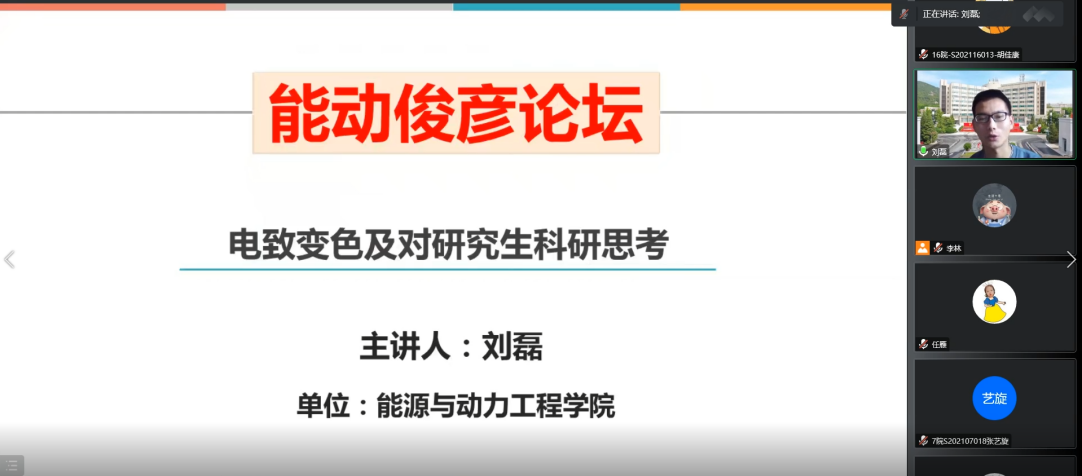 于2022年12月3日下午15:00在线上举办了以“电致变色及对研究生科研思考”为主题的俊彦讲坛,来自各巨乳做爱的300余名研究生在线聆听了此次讲座。本次讲坛邀请到巨乳做爱