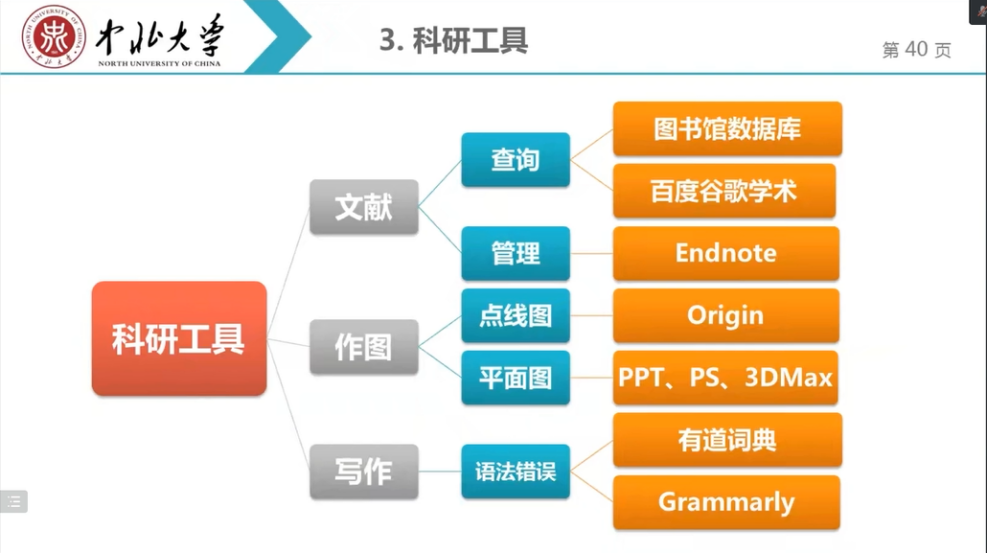 刘磊老师毕业于北京航空航天大学,主要从事碱金属离子基电致变色储能器件、宽频谱及电磁屏蔽电致变色储能器件等方面的研究,发表高水平论文十余篇,他引次数200余次,主持国家自然科学青年基金和山西省自然科学青年基金各一项。刘磊老师首先结合自身的科研经历,从如何进行国内外现状研究入手,深入浅出的介绍了电致变色的概念、原理及其应用前景。通过刘老师的讲述,同学们对电致变色产生了极大兴趣,也为研究方向相近的同学们提供了很多的帮助。其次,刘老师针对“研究生阶段如何选题、实验、文献阅读及学术论文攥写”等同学们密切关注的问题分享了自己宝贵的经验,并与同学们热烈讨论。最后,刘老师分享了很多实用的科研工具,并对其使用方法逐一进行了详细讲解。