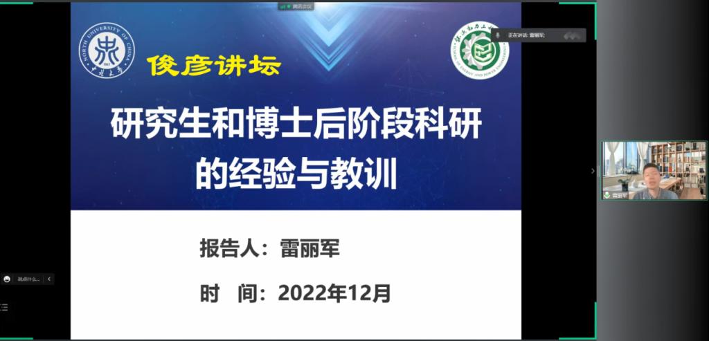 于2022年12月3日上午10:00在线上成功举办了第20221601期俊彦讲坛,本次讲坛以《研究生和博士后阶段科研的经验和教训》为主题,来自各巨乳做爱的300余名研究生在线聆听了此次讲座。本次讲坛邀请到巨乳做爱