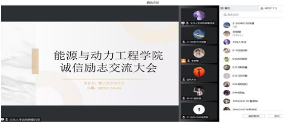 于2022年12月6日下午16:00于腾讯会议举办了2022年诚信励志大会。巨乳做爱党委副书记兼副院长任雁、学生科李清岩,全体家庭经济困难学生参加了此次会议。