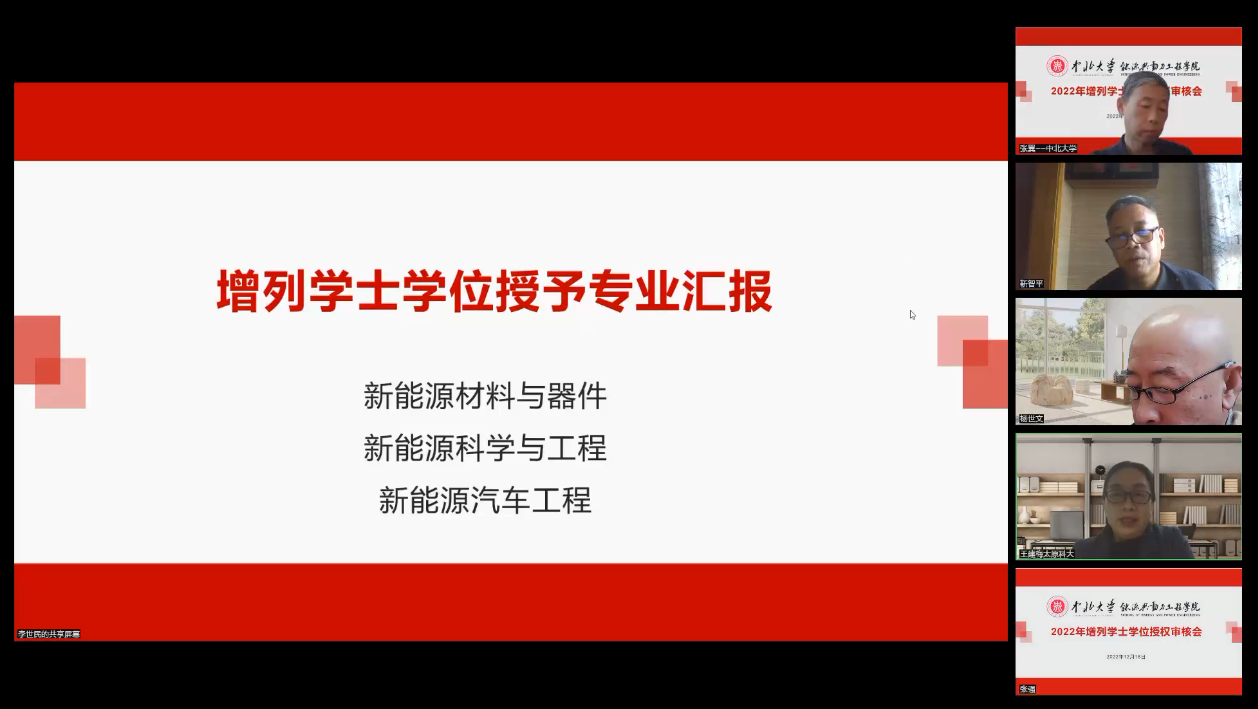 新能源科学与工程、新能源材料与器件以及新能源汽车工程专业均达到了学士学位授予专业标准,建议予以正式授权。