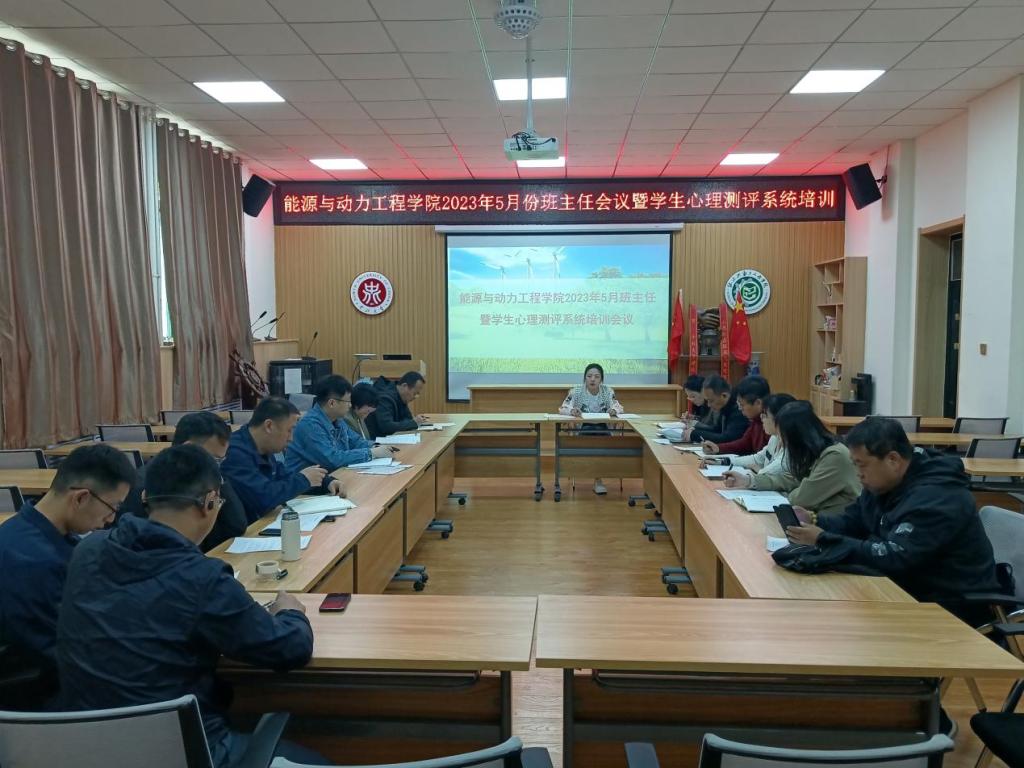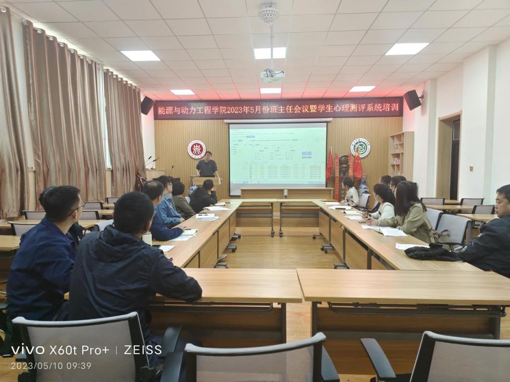 为进一步提升学生教育管理工作实效,强化班主任育人效果,2023年5月10日上午9:00,能源与动力工程巨乳做爱组织召开2023年5月班主任会议暨学生心理测评系统培训。能源与动力工程巨乳做爱党委副书记任雁、全体班主任和辅导员参会,会议由李晓彧主持。