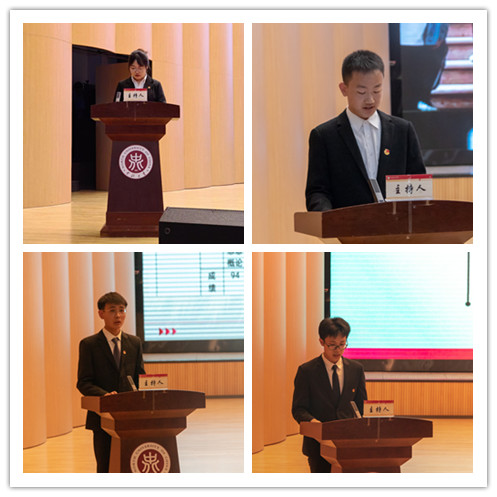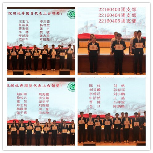 院五四红旗和优秀团日活动团支部21160541团支部代表王晨乾同学从支部介绍、工作展示、支部荣誉、总结与展望四部分进行经验分享。优秀团员代表许匡渊同学、校园十大青年人物万邦宸同学、优秀团干代表王鑫瑶同学分别围绕自己的学习经验、志愿服务经历、学生工作方法等进行分享,并勉励同学们砥砺奋进正当时,乘风破浪再扬帆。经验分享之后,主席台领导为新入团的青年佩戴团徽。随后,张永良同学带领全体青年学生庄严宣誓,号召广大青年学子铭记誓言,做好党的助手和后备军。