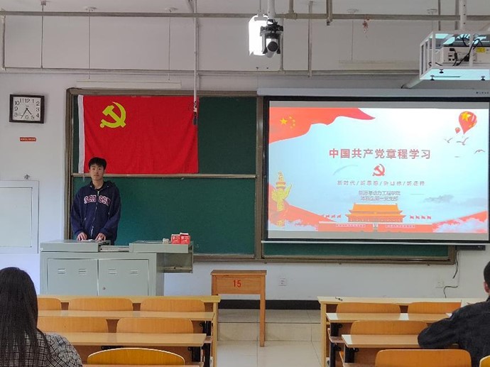 2023年4月25日下午,本科生第一党在15301为支部全体党员开展“中国共产党章程学习”主题活动。2022年10月22日,中国共产党第二十次全国代表大会通过了关于《中国共产党章程(修正案)》的决议。支部副书记程金辉带领支部党员领读党章。