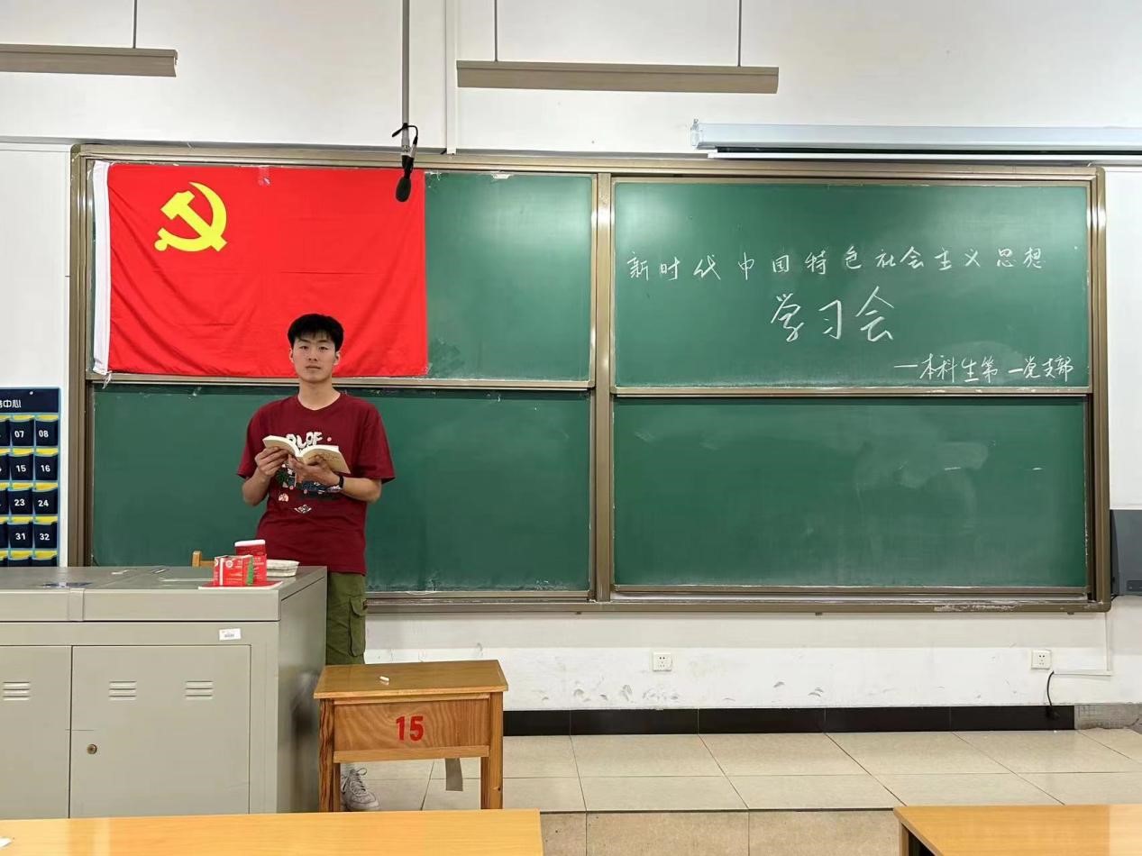 2023年5月16日下午,本科生第一党支部全体党员在15204开展《习近平新时代中国特色社会主义思想专题摘编》学习会。程金辉同志带领支部党员领读第1-4章。