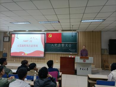 接着,叶增民同志为同学们详细介绍了大学生入党要求、入党流程和相关材料审批等内容,强调了从申请入党到成为正式党员期间的注意事项,并鼓励同学们端正思想、向党组织靠拢,为成为合格党员而努力。